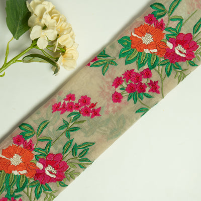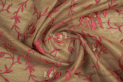 Devyani Jaal on Fuxia Semi Raw Silk Embroidered Fabric