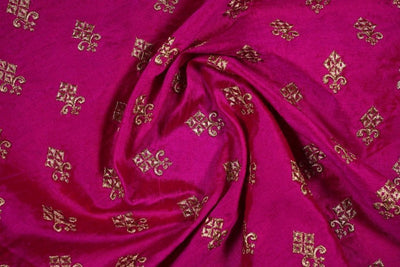 Sami Buta Buti on Fuxia Munga Silk Embroidered Fabric