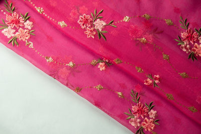 Ruba Buta on Fuxia Munga Silk Embroidered Fabric