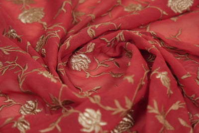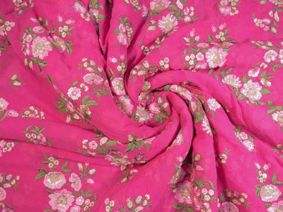 Afana Buta on Fuxia Semi Georgette Embroidered Fabric