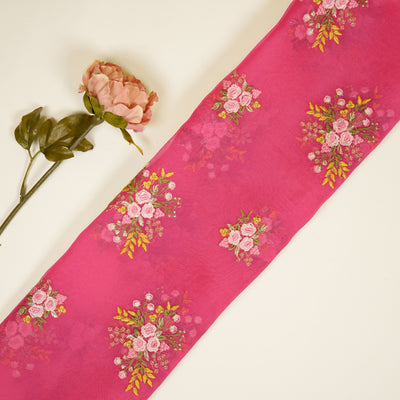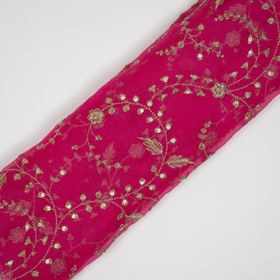 Anjana Geometric Jaal on Fuxia Semi Georgette Embroidered Fabric