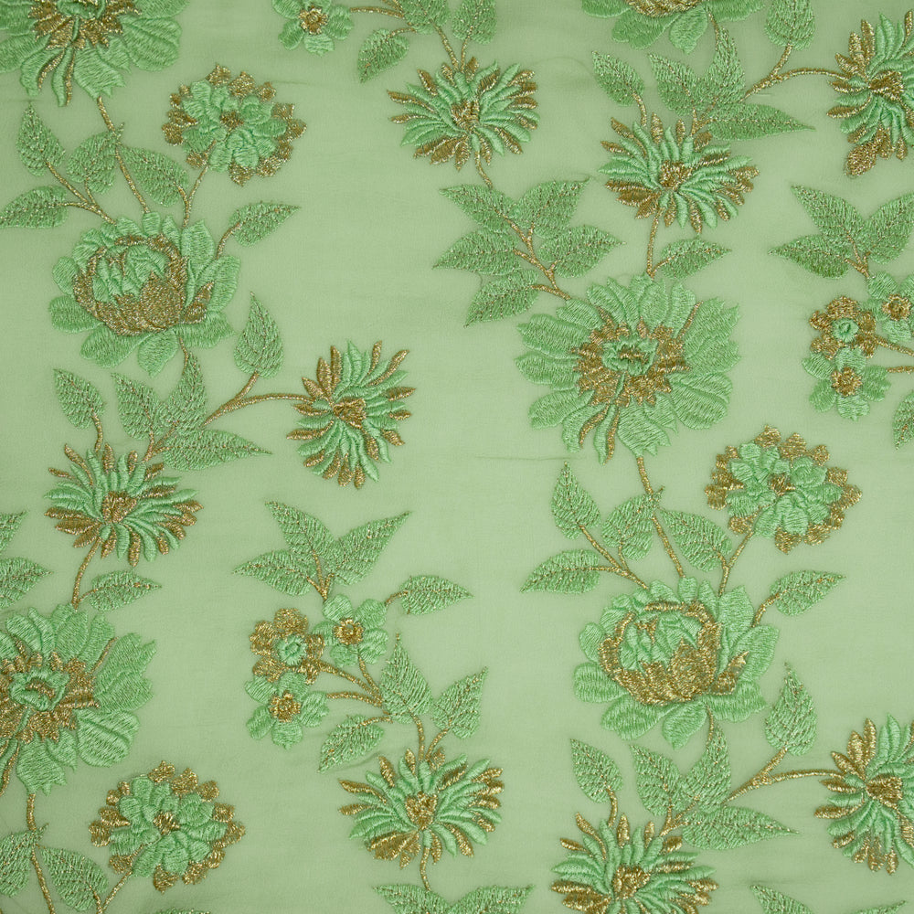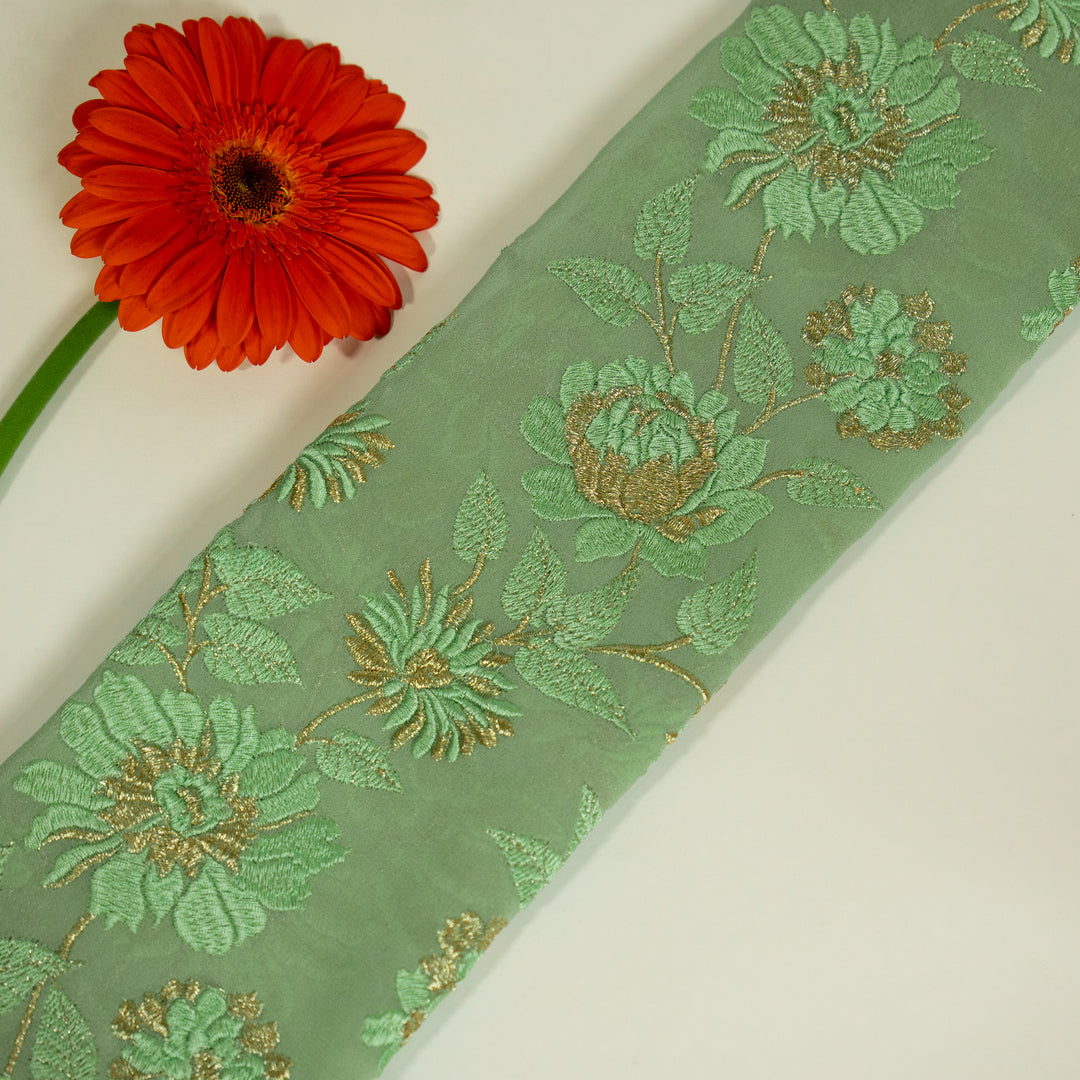 Floral Parsi Jaal on Sea Green Semi Georgette Embroidered Fabric