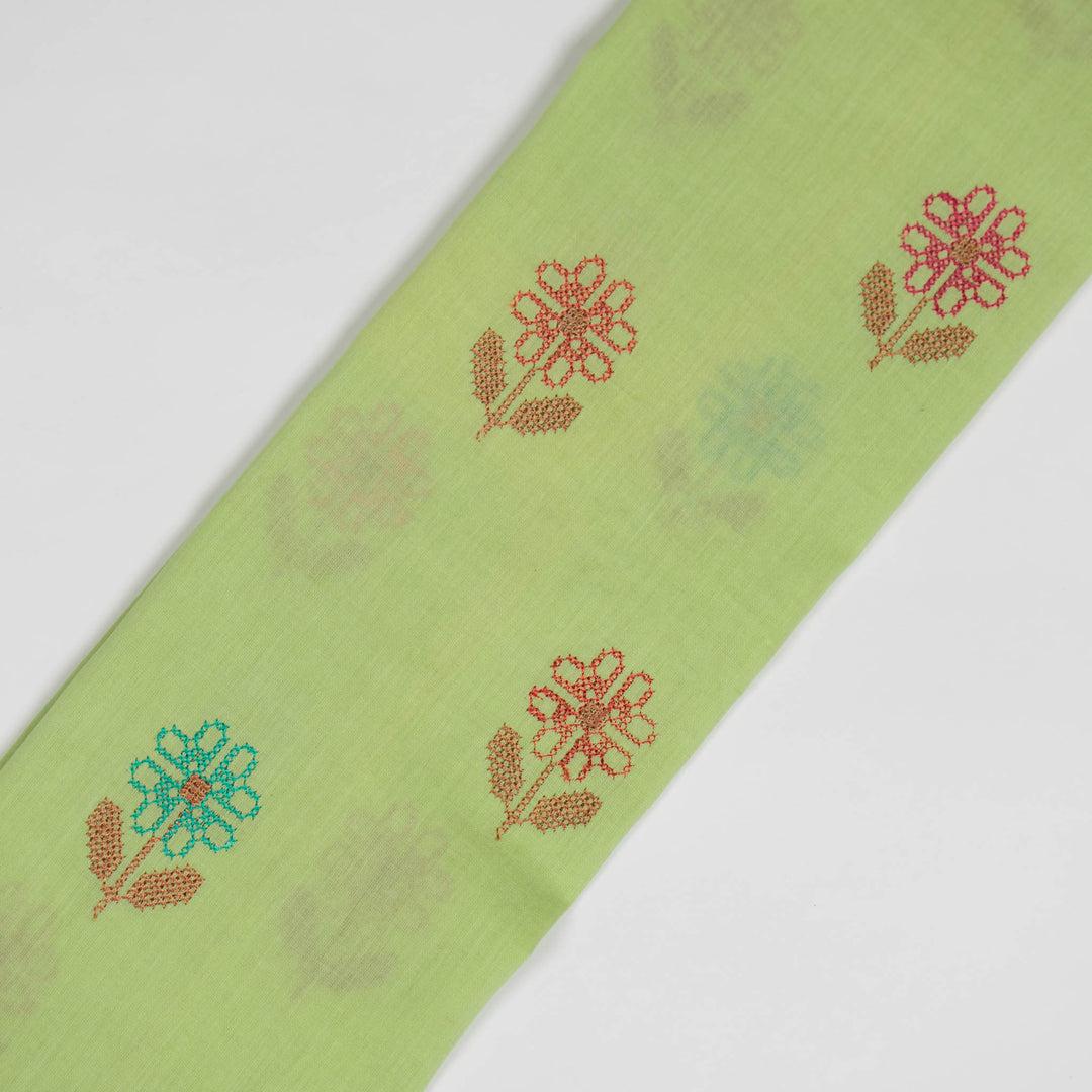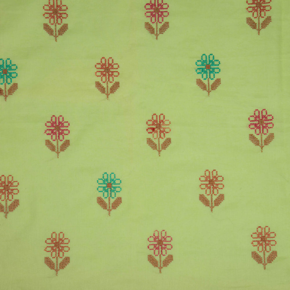 Mahek Flora Buta on Pista Green Gauged Linen
