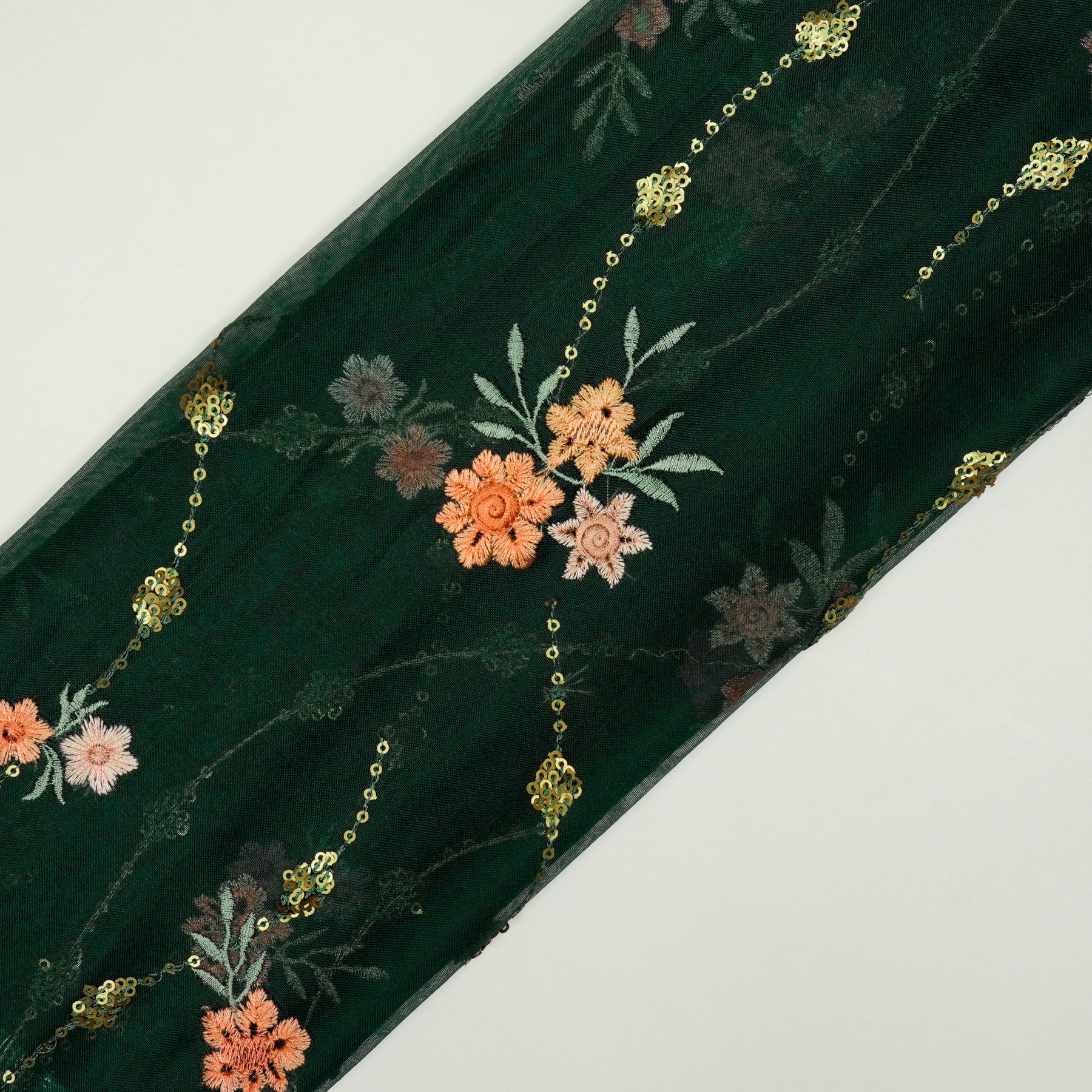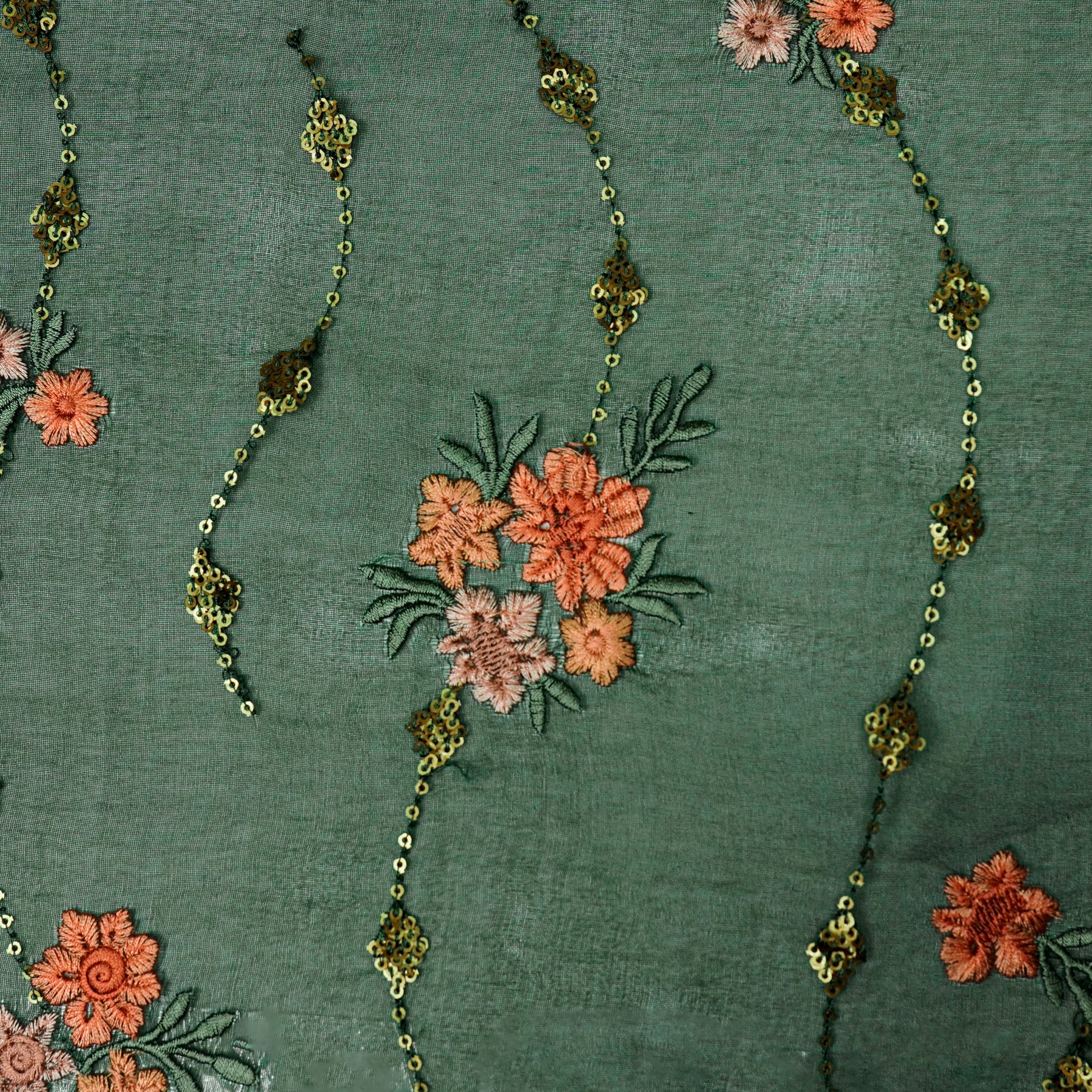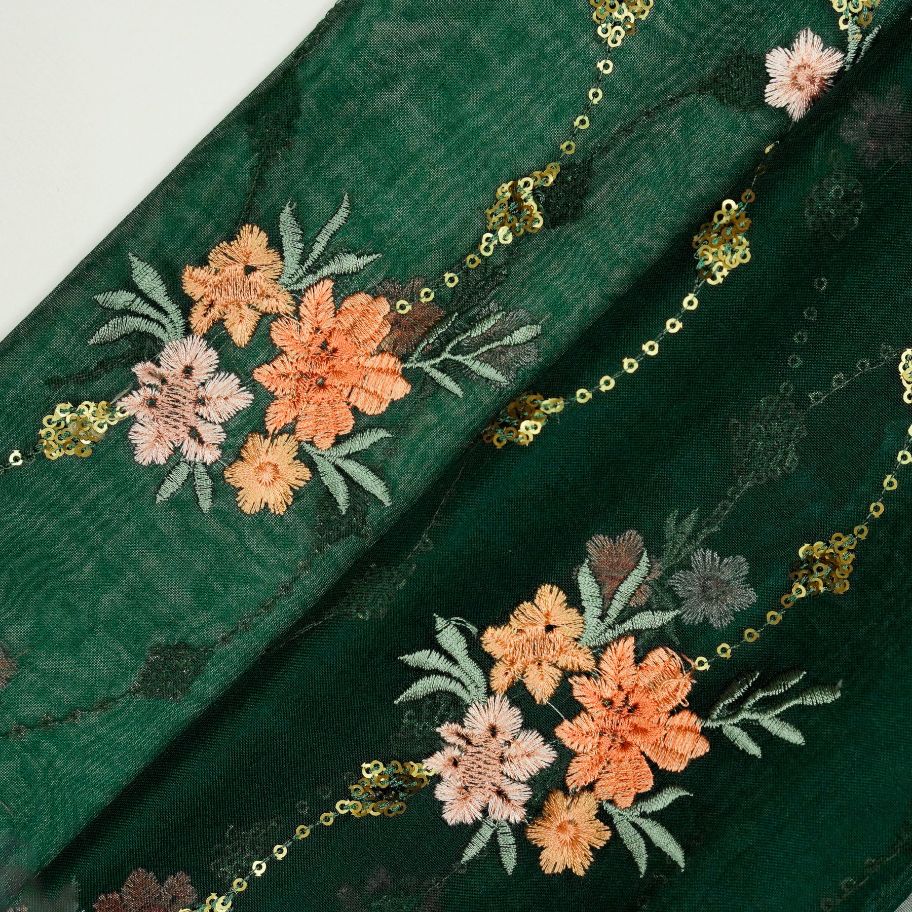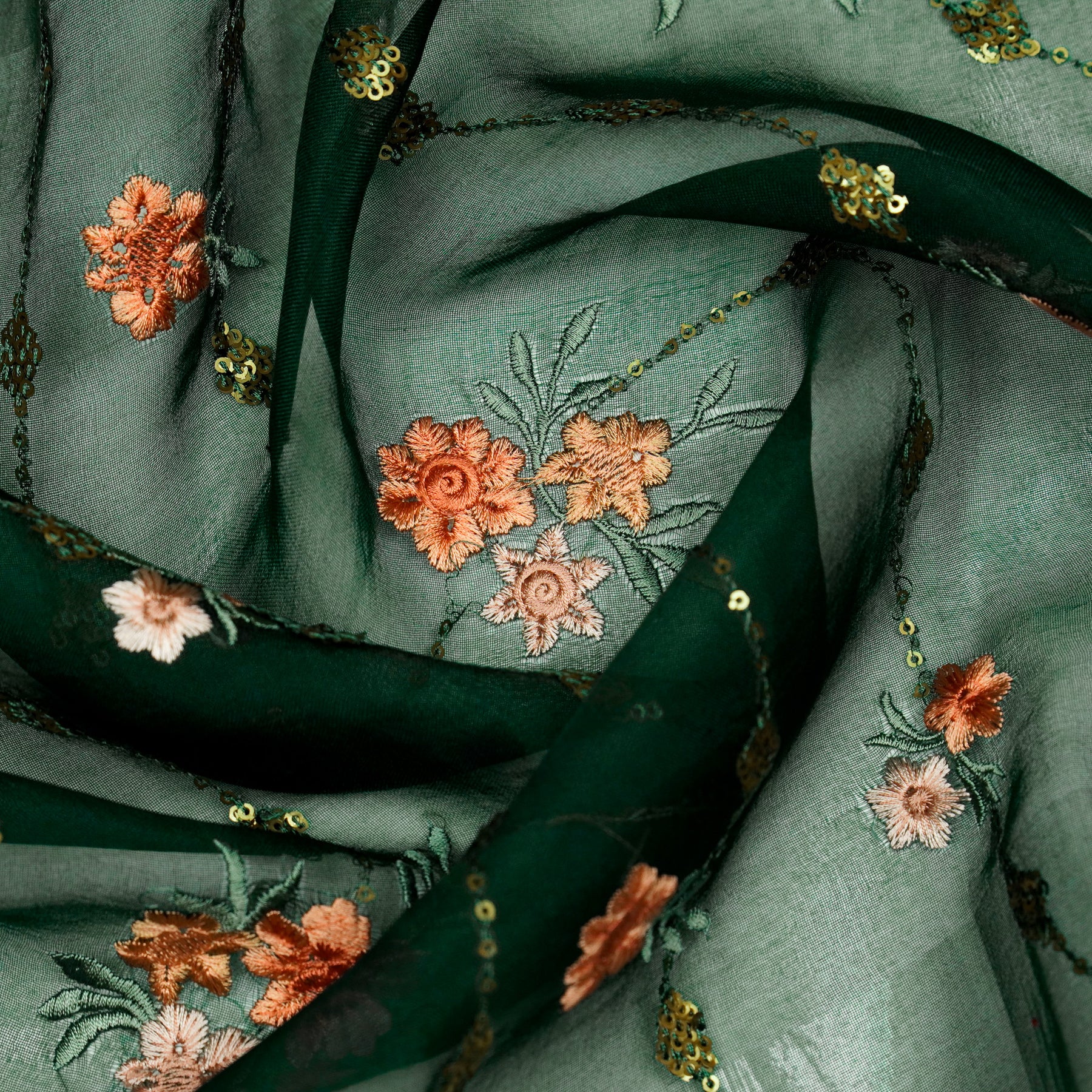 Purvai Floral Jaal on Bottle Green Silk Organza
