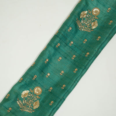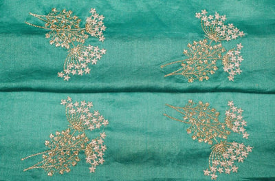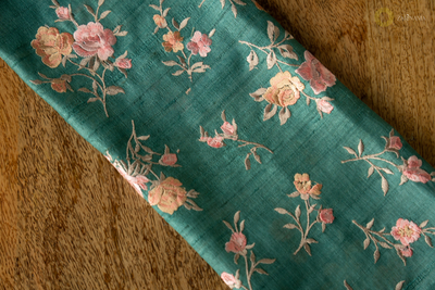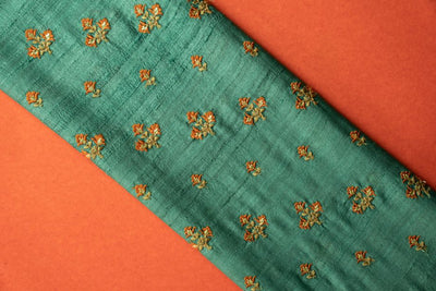 Nurvi Buti On Teal Tussar Silk Embroidered Fabric