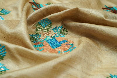 Asin Buti on Teal Tussar Silk Embroidered Fabric