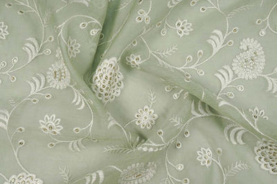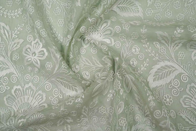 Aaloka Jaal on Light Teal Silk Organza Embroidered Fabric