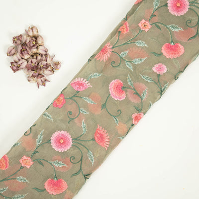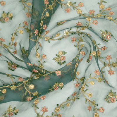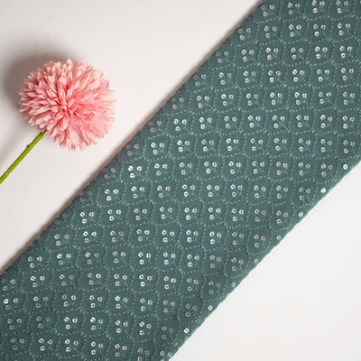 Yami Sequins Jaal on Dusky Teal Semi Georgette Embroidered Fabric
