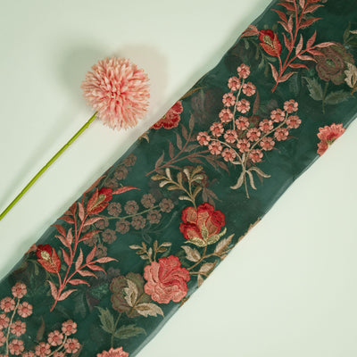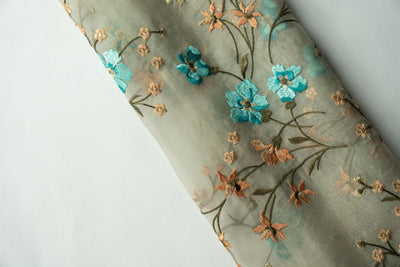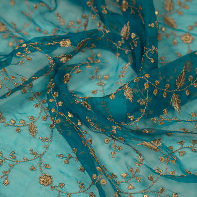 Isha Jaal on Teal Silk Organza Embroidered Fabric