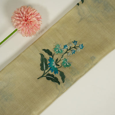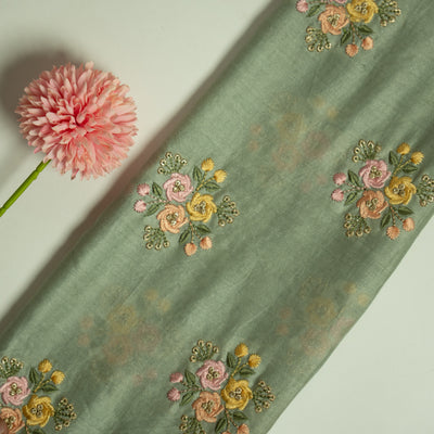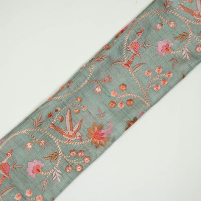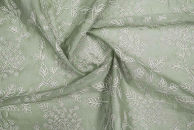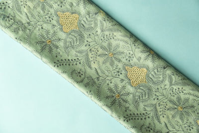 Yutika Jaal on Light Teal Tussar Silk Embroidered Fabric