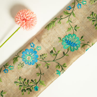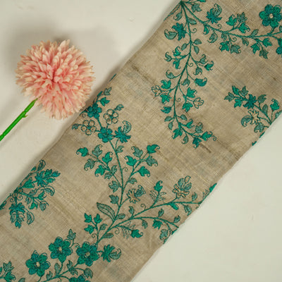Rida Floral Jaal on Natural/Teal Tussar Silk