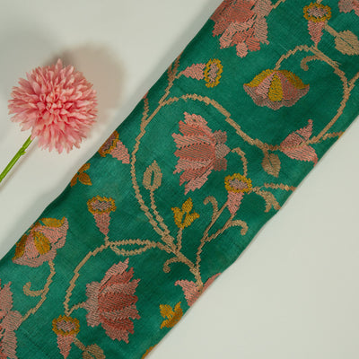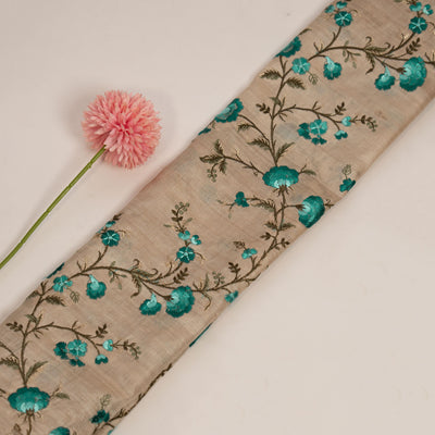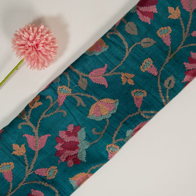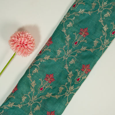 Zeba Jaal on Teal Semi Raw Silk Embroidered Fabric