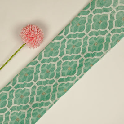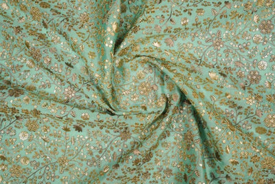 Shipra Jaal on Light Teal Silk Organza Embroidered Fabric