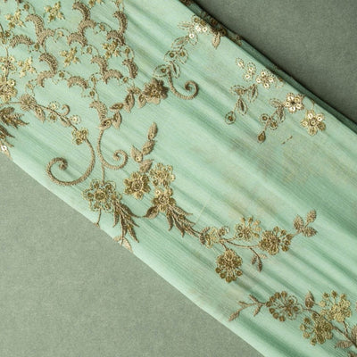 Aanika Jaal on Light Teal Semi Georgette Embroidered Fabric