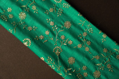 Adeeba Buta Buti Mixture on Teal Semi Raw Silk Embroidered Fabric