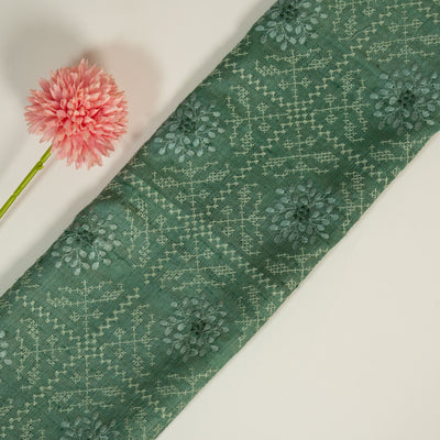 Griva Jaal on Teal Cotton Silk Embroidered Fabric