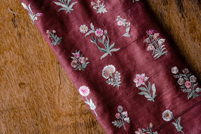 Chaitali Buta on Wine Munga Silk Embroidered Fabric