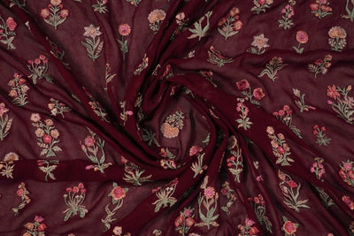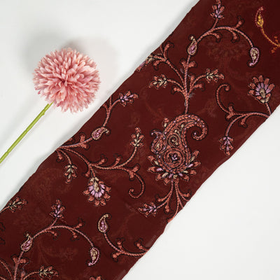 Laiba Kashmiri Jaal on Wine Semi Georgette Embroidered Fabric