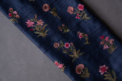 Vasundhara Floral Butas on Navy Blue Tussar Silk
