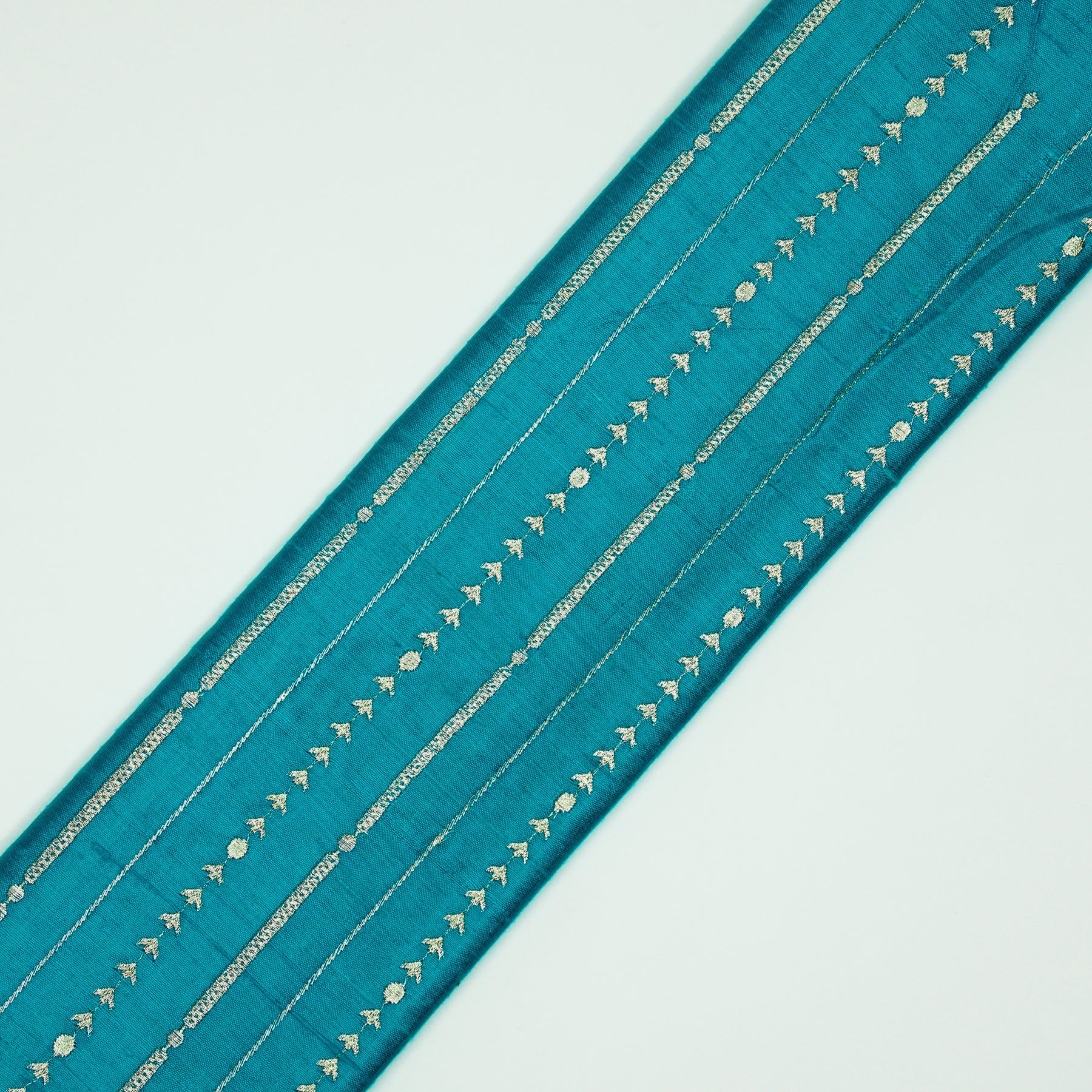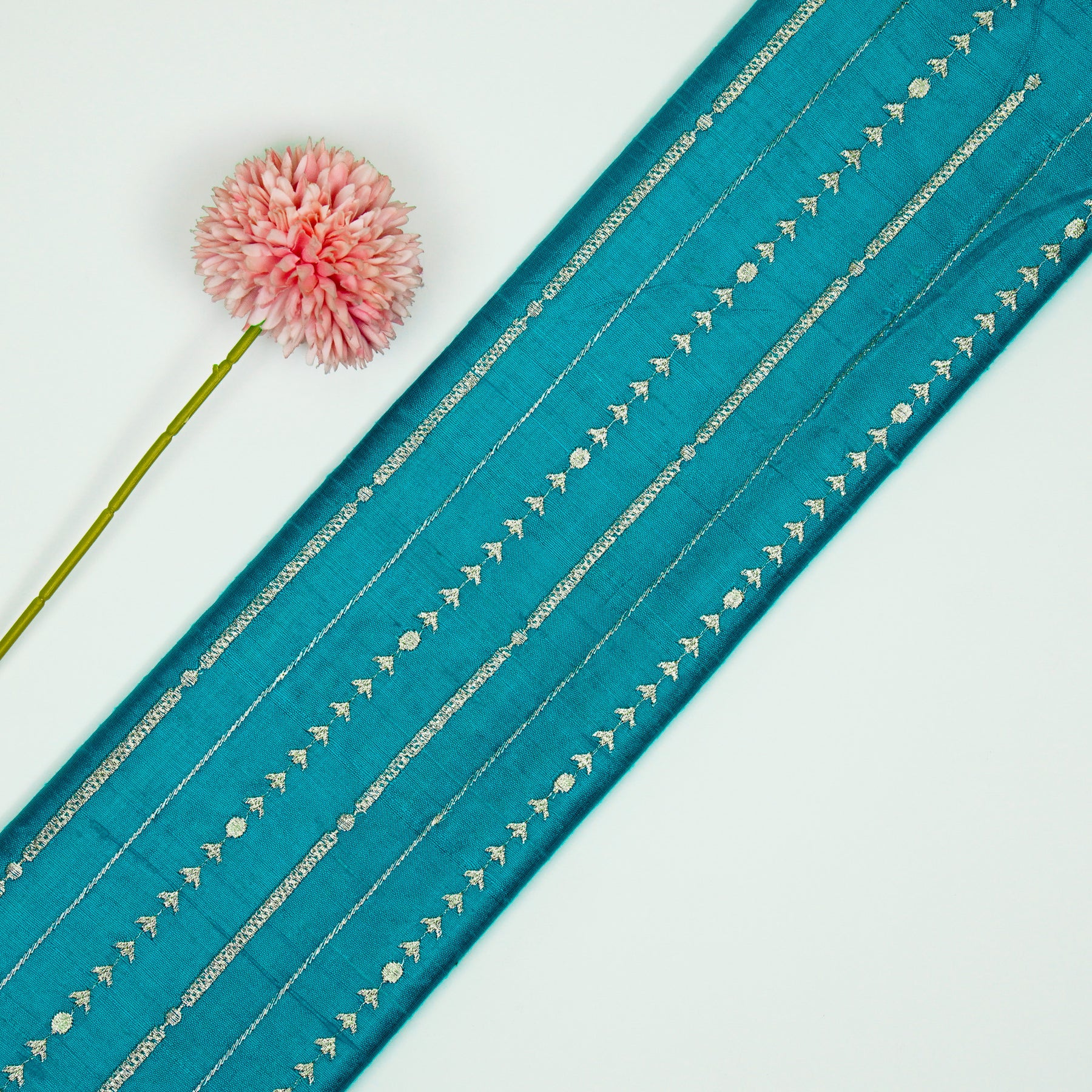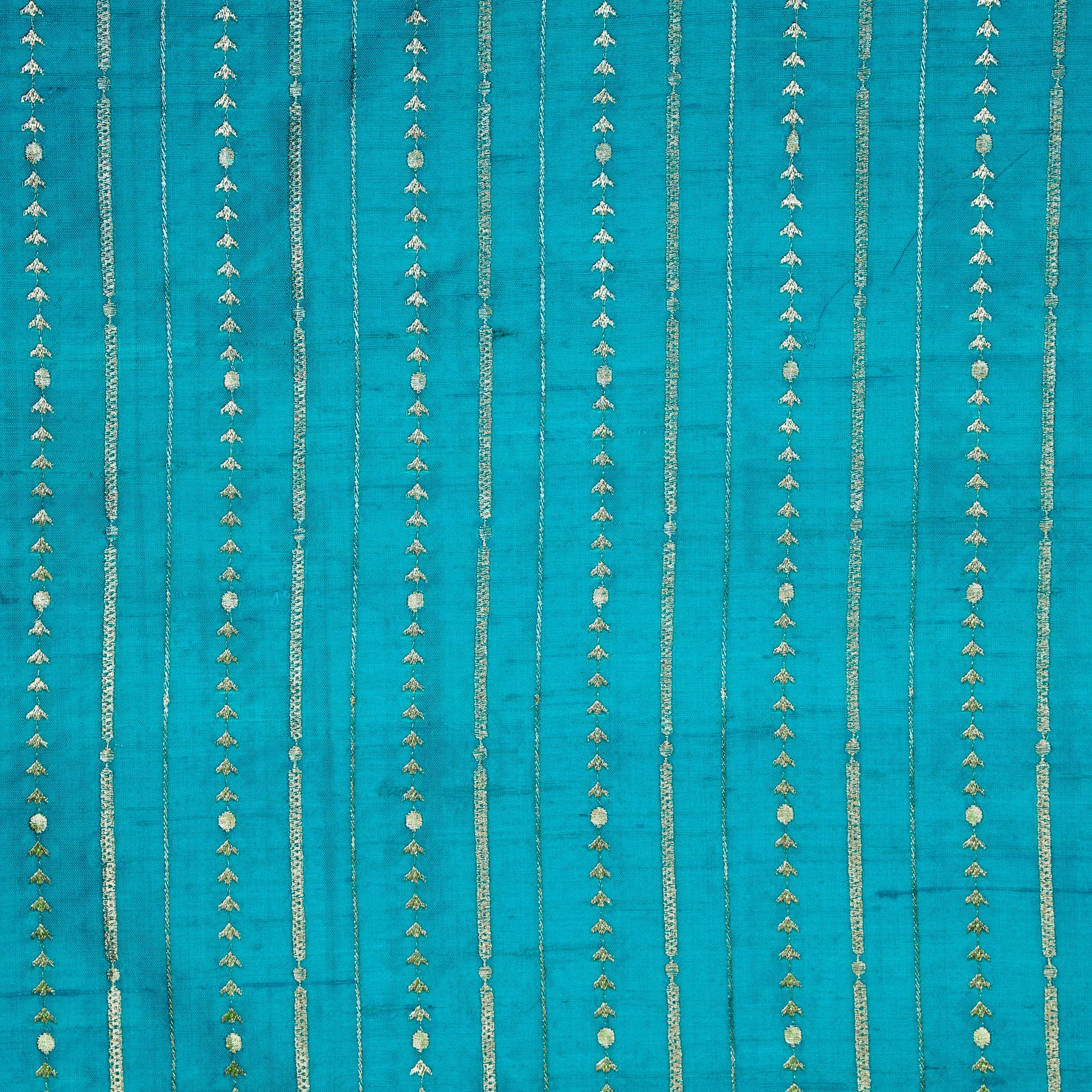 Zavaya Jaal on Peacock Blue Raw Silk Embroidered Fabric