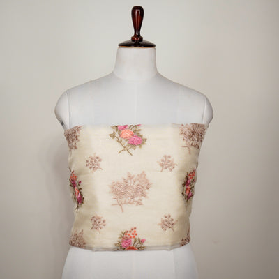 Floral Bunch Blouse Piece on Ivory Silk Organza