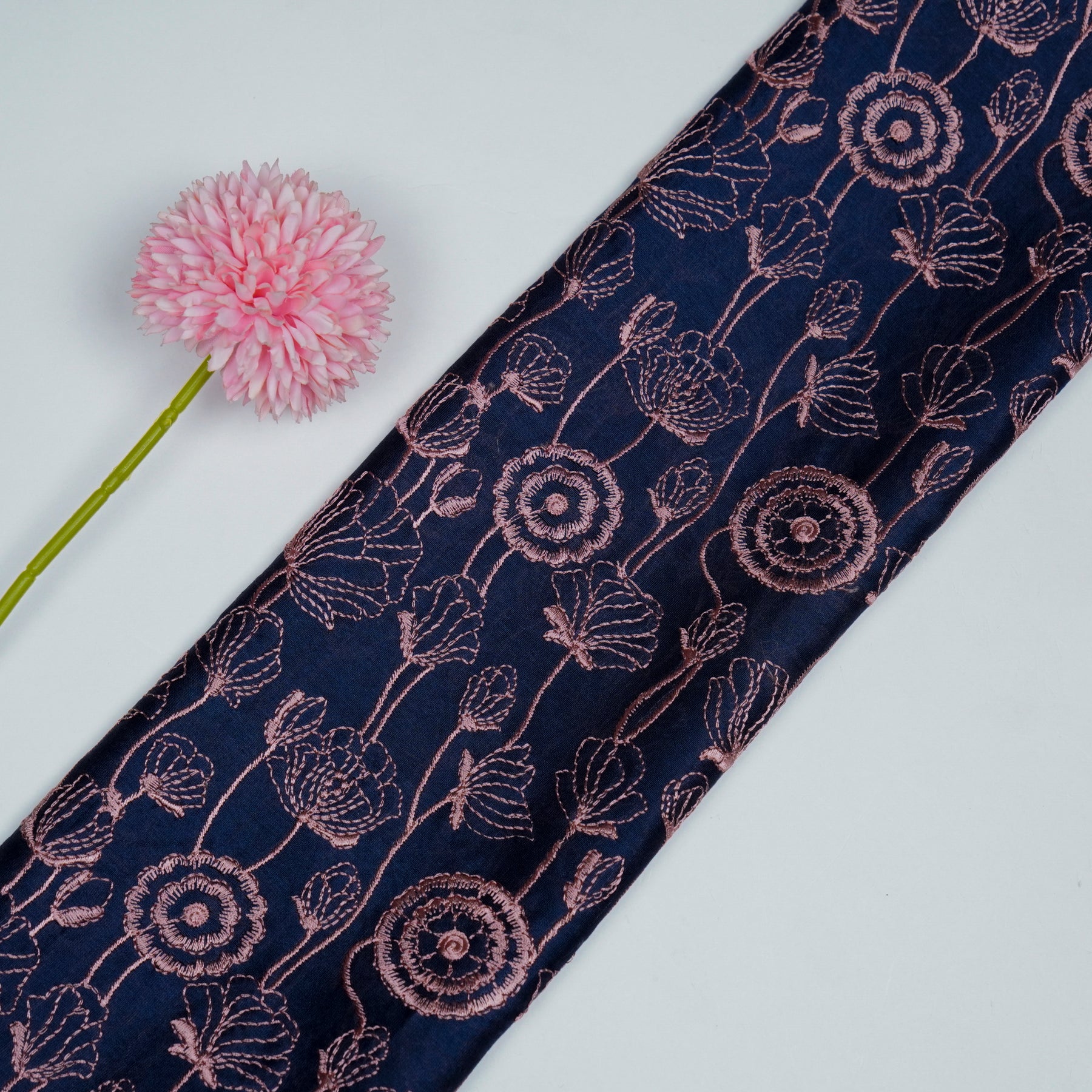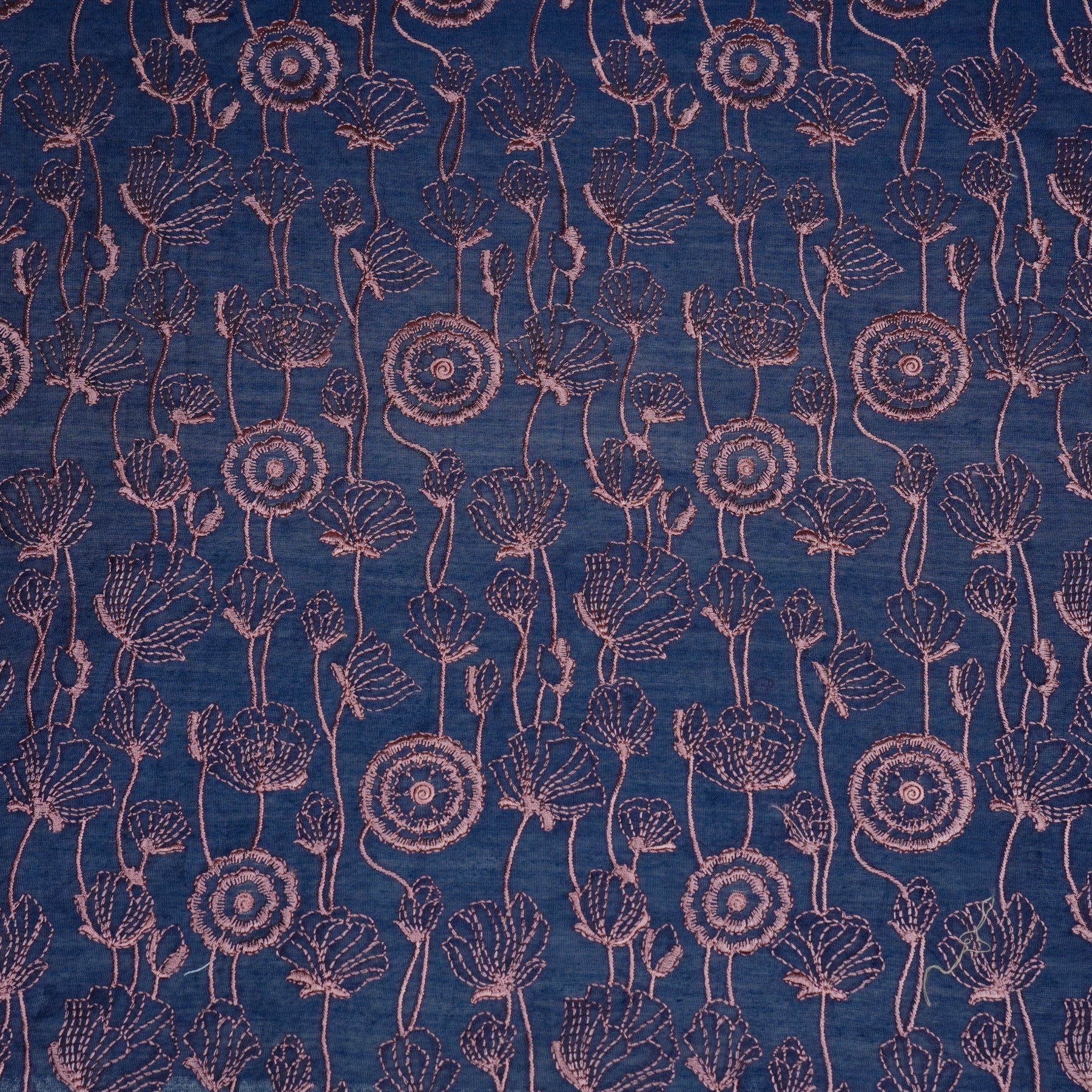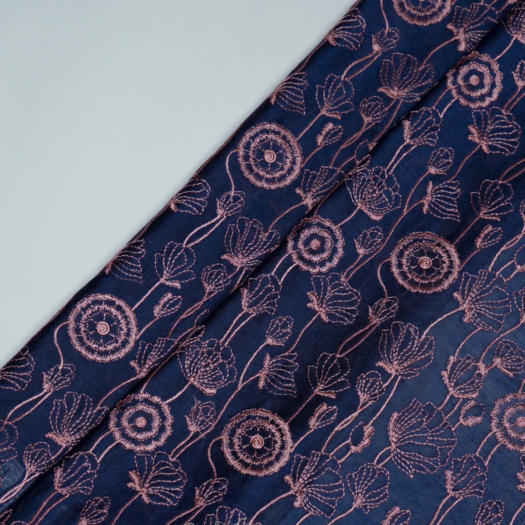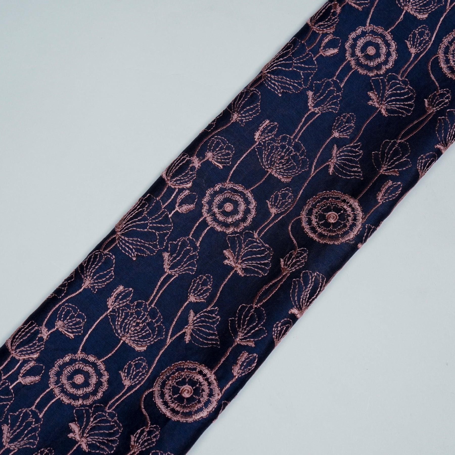 Isha Jaal on Navy Blue Luxe Silk Chanderi Embroidered Fabric