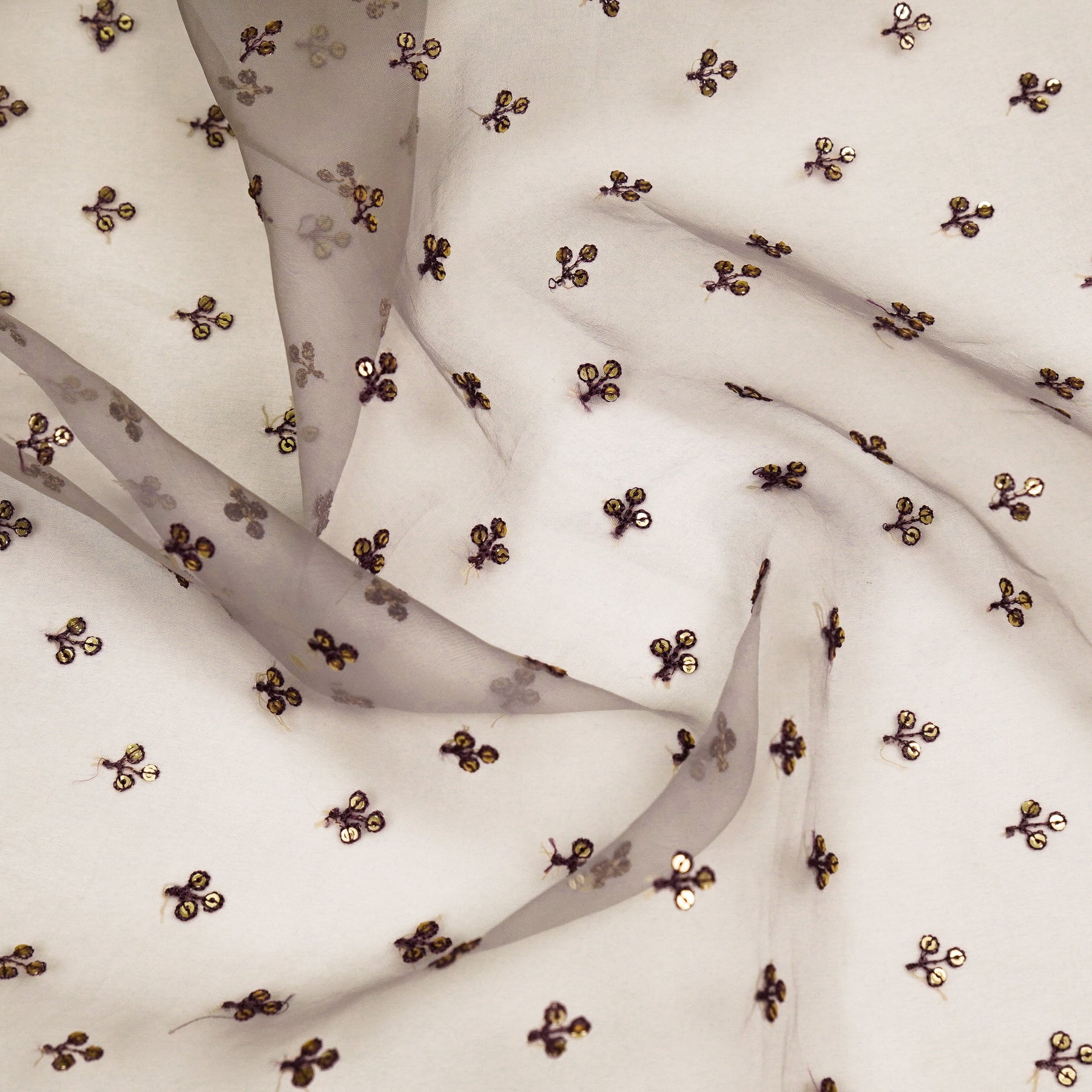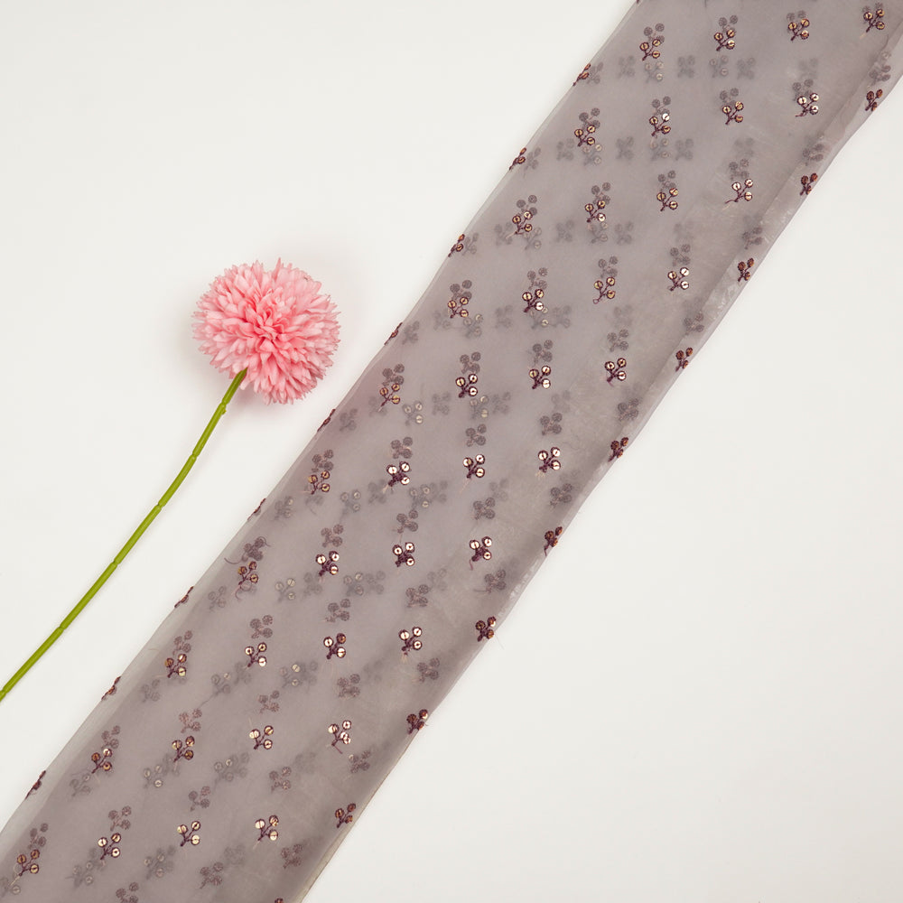 Sunheri Buti on Light Mauve Imported Silk Organza Embroidered Fabric