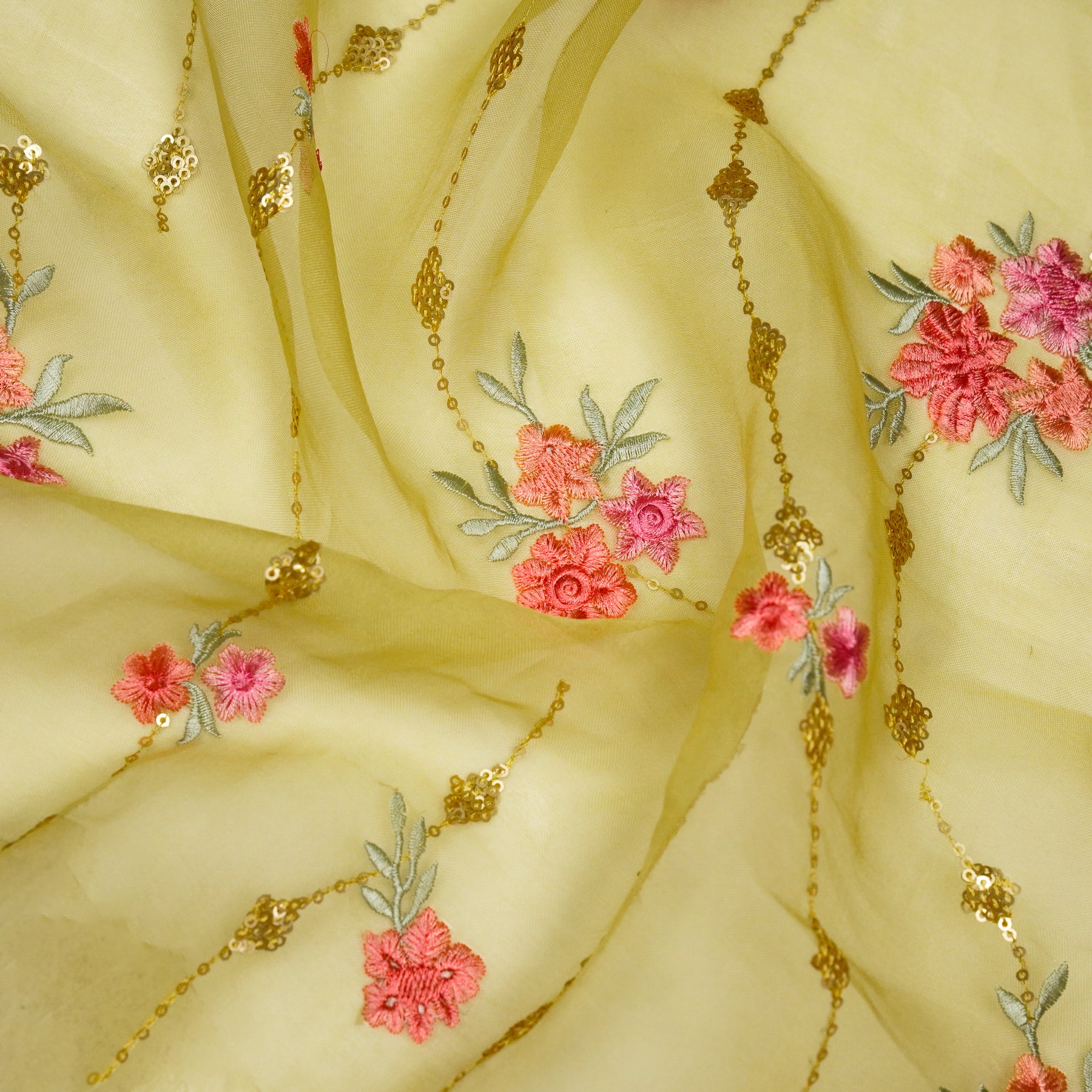 Purvai Floral Jaal on Lemon Silk Organza