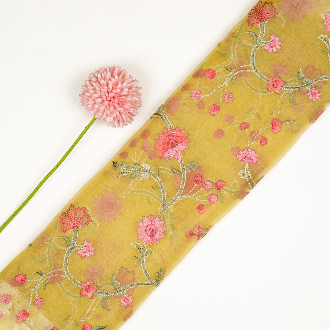 Riha Jaal on Lemon Imported Silk Organza Embroidered Fabric