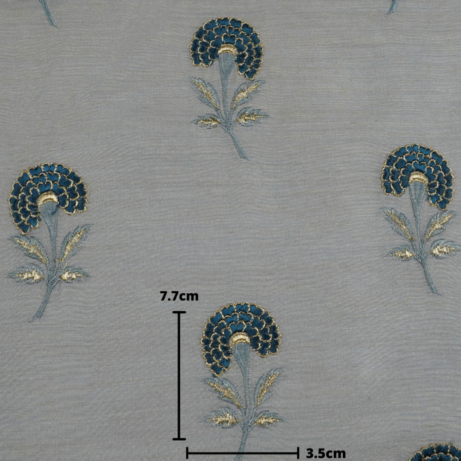 Shabana Floral Buta on Navy Blue Munga Silk- Zarinama