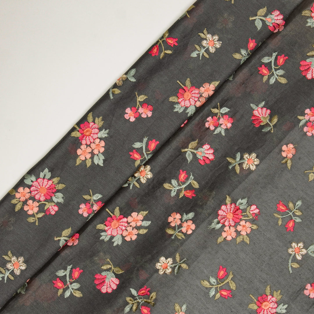 Shyra Buti on Charcoal Silk Chanderi