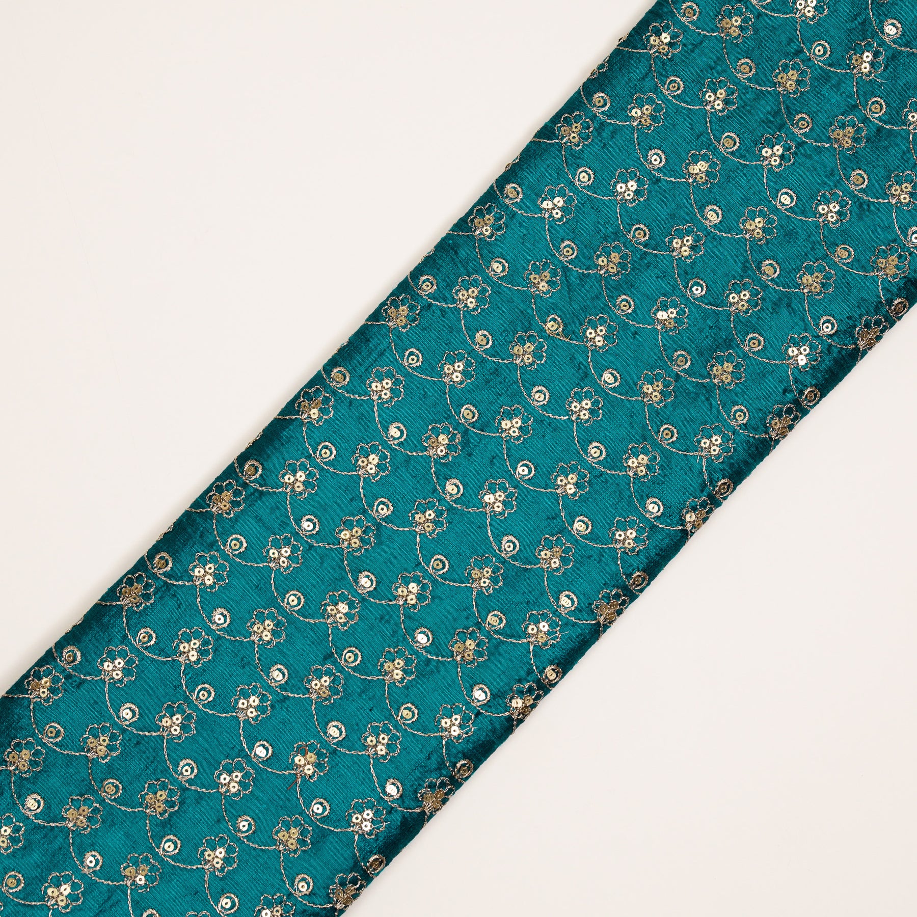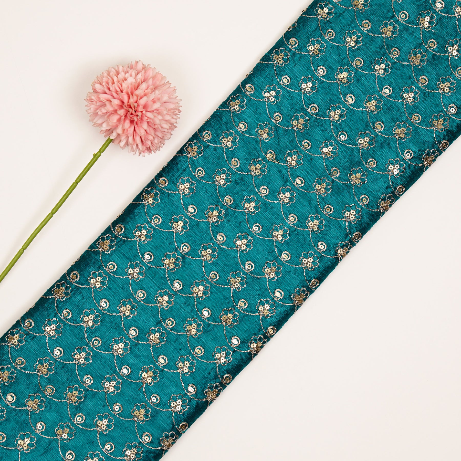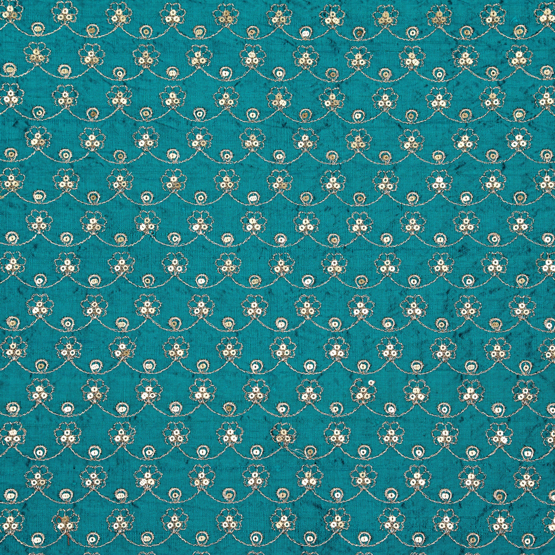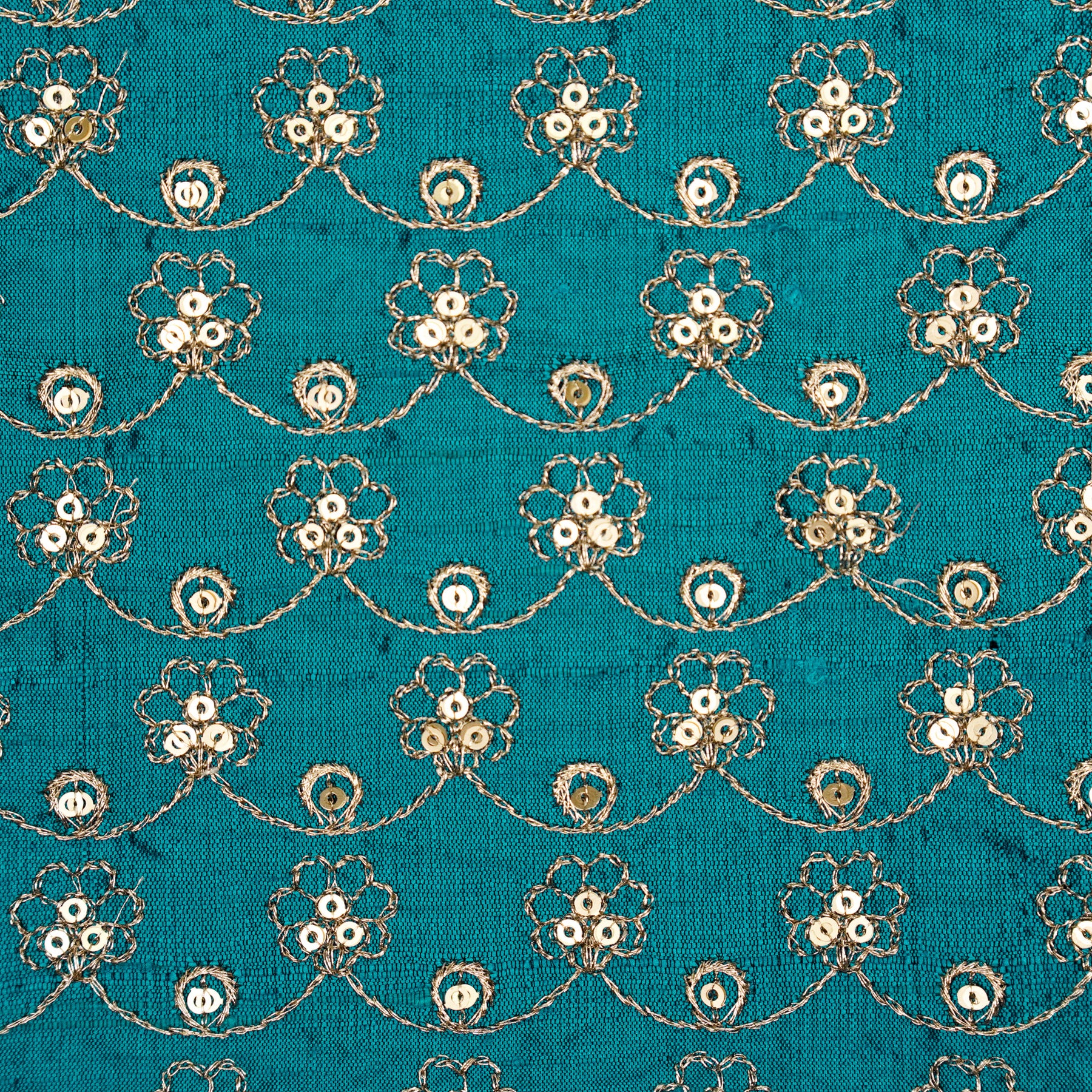 Varnika Jaal on Peacock Blue Raw Silk Embroidered Fabric