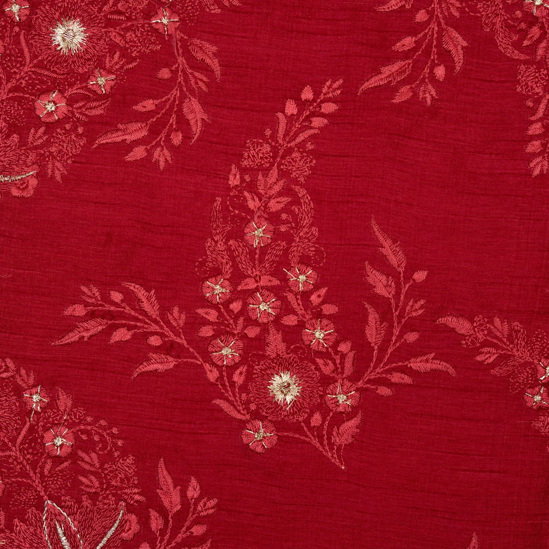Zohra Buta on Tomato Semi Raw Silk Embroidered Fabric